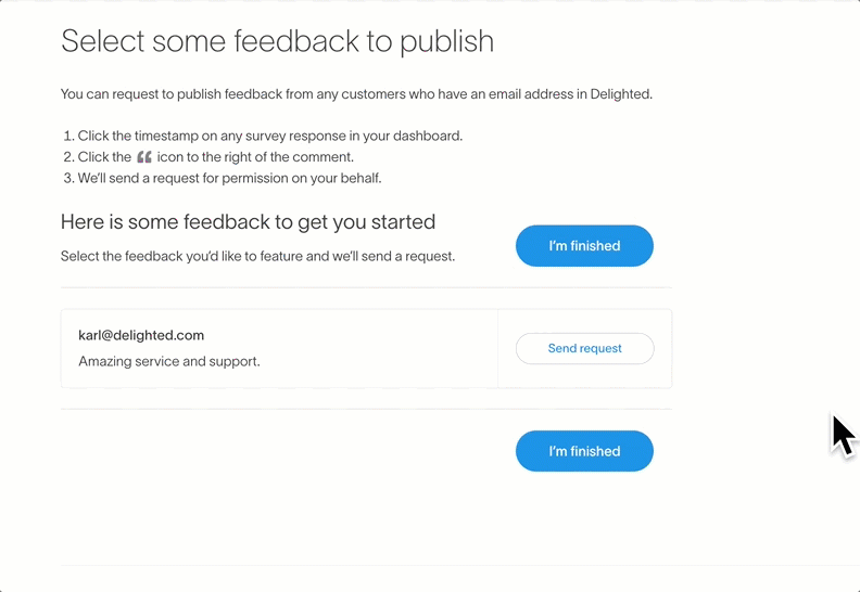 Once you’ve received permission to share feedback, the next step would be to select which responses you want to display in your Testimonial widget.